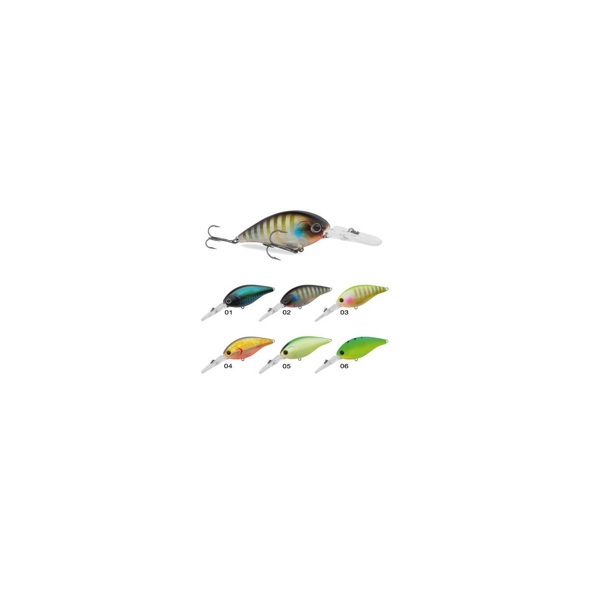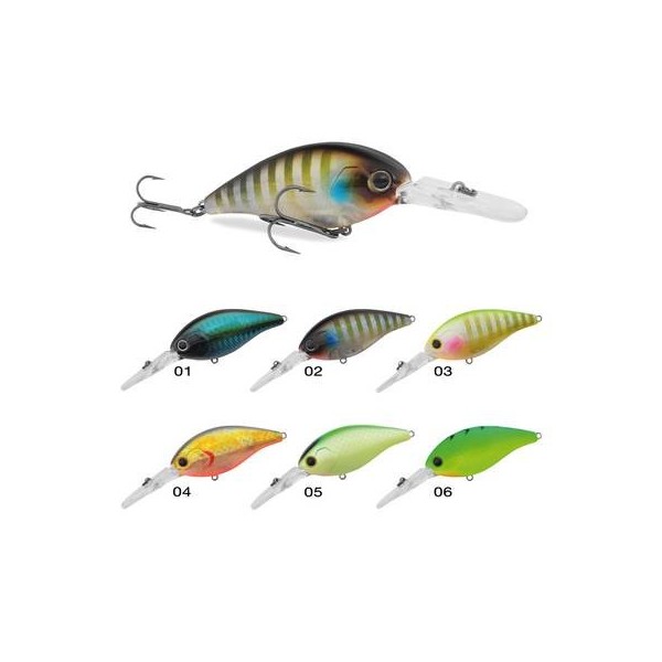 Crankbait dal rapporto peso/dimensioni elevato e sfera mobile interna per un ottimo assetto in fase di lancio. La particolare forma squadrata e inclinazione della paletta fanno si